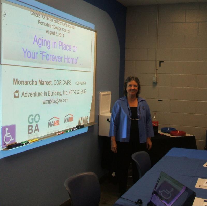 In celebration of Aging in Place week, on October 13, 2010 Monarcha Marcet co-presented with Bill Ockenden, WAO Builders at the third annual National Aging in Place Council (NAIPC) event held at the Home Builder's Association of Metro Orlando.